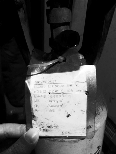▲唐山市玉田縣弘泰線材有限公司在線監(jiān)測設(shè)施標(biāo)氣過期。